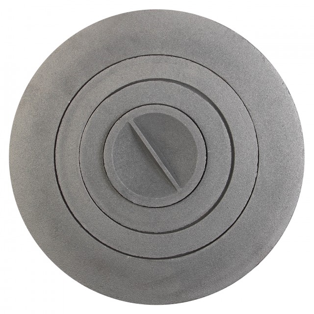 Чугунная печная плита ПК-3 отличается своей компактностью - её диаметр составляет 35,2 см, а толщина - 0,5 см, за счёт чего её вес всего лишь 6 кг!