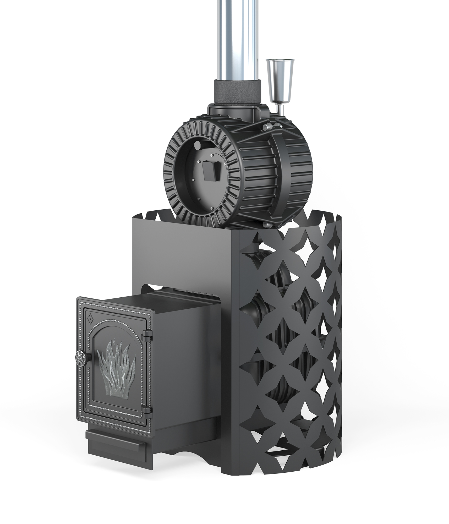 Каменка Турбопара Шторм сделана в герметичном исполнении, боковые стенки заварены. На одной из боковых стенок на винтах размещена крышка, через которую закладываются камни, чугунные шишки или теплоаккумуляторы Везувий. Для выхода пара предназначены боковые щелевые отверстия, закрытые снаружи П-образным профилем. Профиль направляет входящий пар вверх, на прогретые камни открытой каменки.