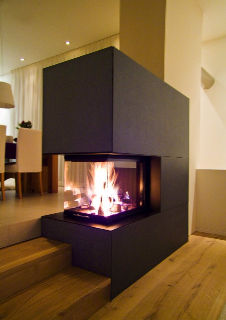 Система "Чистое стекло" создает воздушный поток, отсекающий копоть. Воздух подается через специальную щель над стеклом. Направляющая пластина задает потоку направление движения вдоль стекла. Воздух берется снаружи и холоднее огня. Он опускается вниз по стеклу и создает защитную завесу. В результате вы наслаждаетесь видом горящего пламени через чистое стекло.