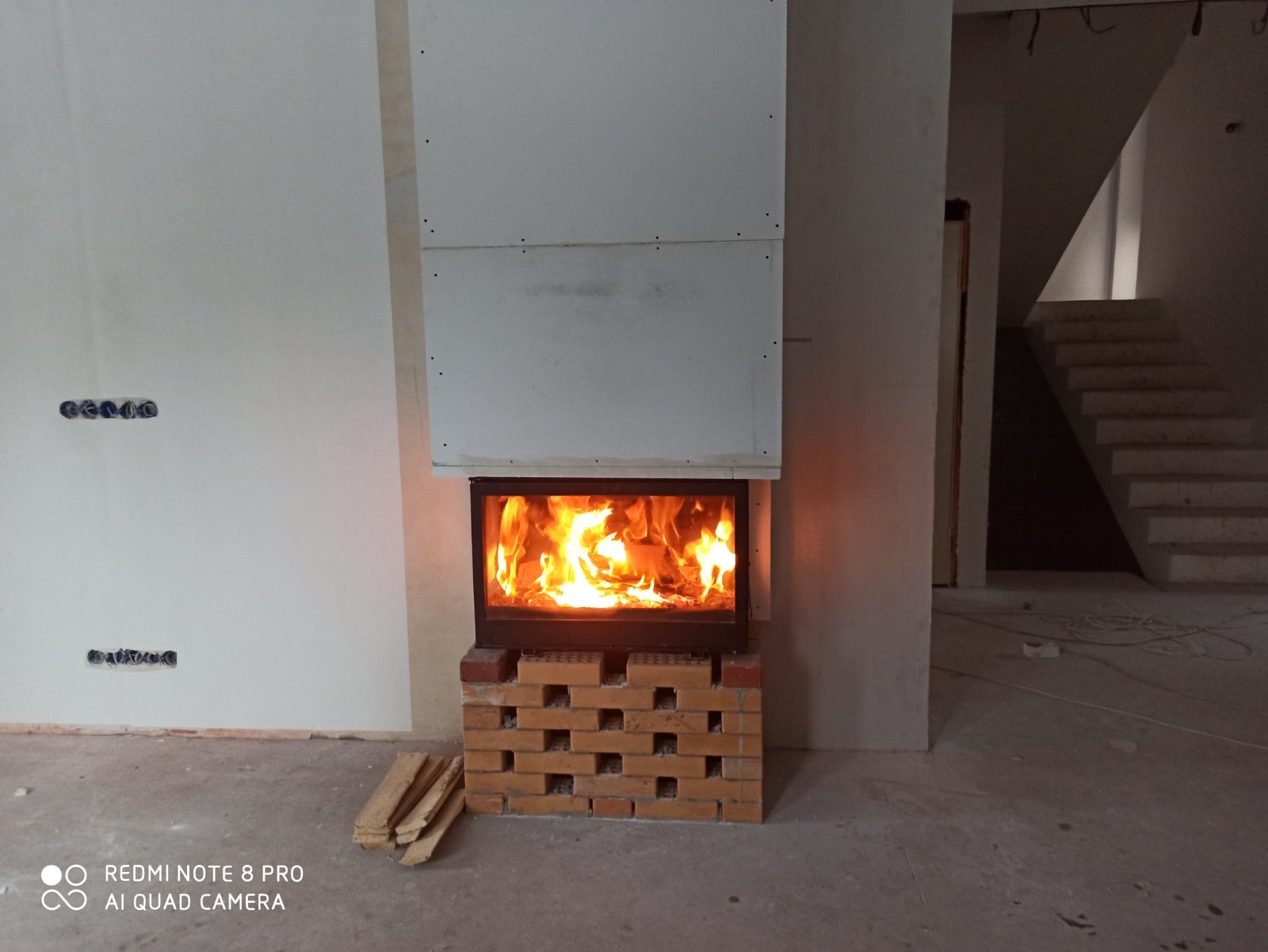 Монтаж Каминой топки без финишной отделки с первой протопкой )))