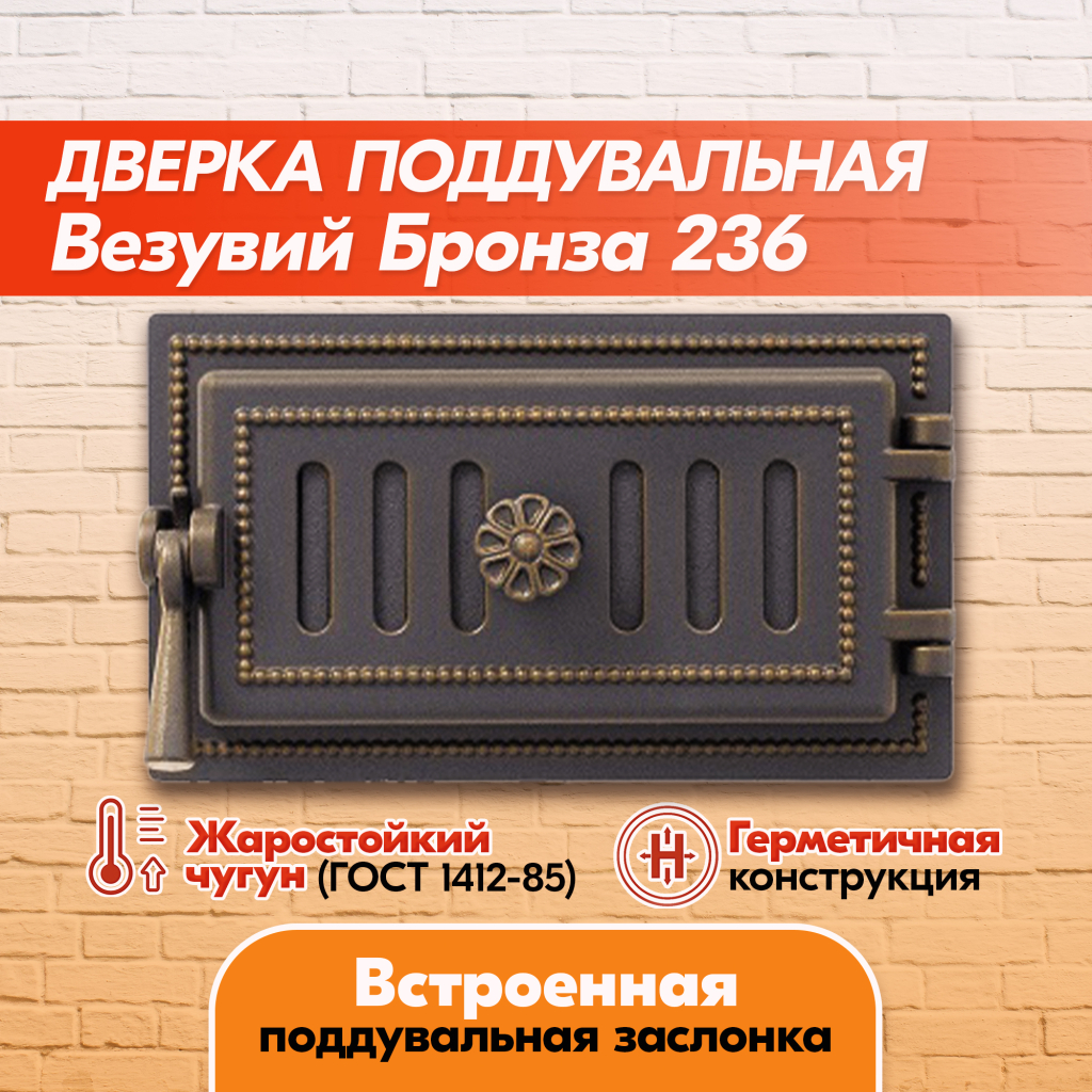 Дверка поддувальная Везувий 236 (Бронза), герметичная