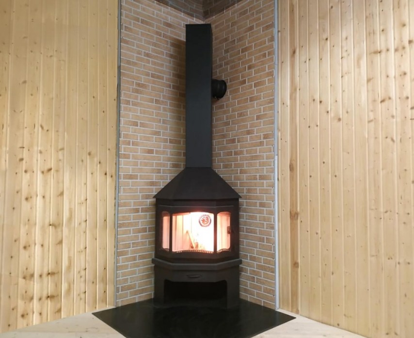 К особенностям угловой печи-камина Мюнхен следует отнести небольшой вес модели, который не потребует устройство фундамента или наличия бетонной плиты перекрытия.