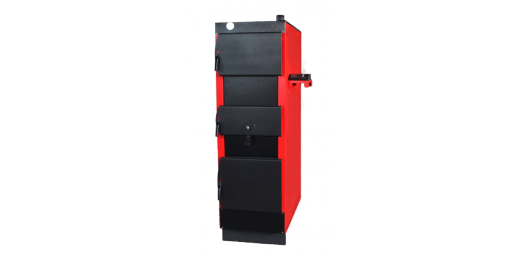 Котел можно монтировать как в открытых системах отопления c естественной циркуляцией теплоносителя, так и в закрытых системах с принудительной циркуляцией. Корпус котла имеет цельно сварную конструкцию и состоит из топки – теплообменника и наружного кожуха. Пространство между кожухом и топкой заполнятся теплоносителем (водой) теплообмен происходит по всей наружной поверхности топки. Теплообменник котла изготовлен из качественной стали толщиной 4- 5 мм. Котел комплектуется воздухонагнетателем (вентилятором) и контроллером (микропроцессорным терморегулятором) что обеспечивает оптимизацию процесса горения дров при различных режимах и длительность горения на одной закладке от 6 до 15 часов